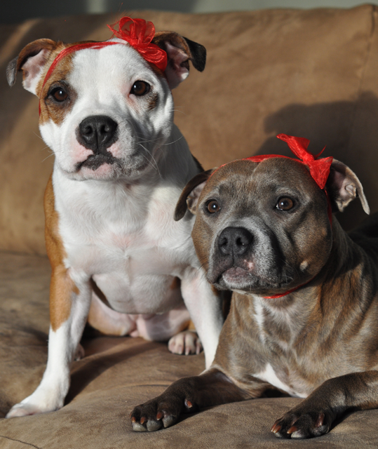 Not only did Vi get to take and pass her CGC test, but she also got to partake in the 'meet the breed' at the local staffy club's booth where she charmed the socks off the general public. She liked that part a lot. She also got to meet up with her sissy which then prompted a ton of HAPPY submissive peeing. Good weekend for the princess!